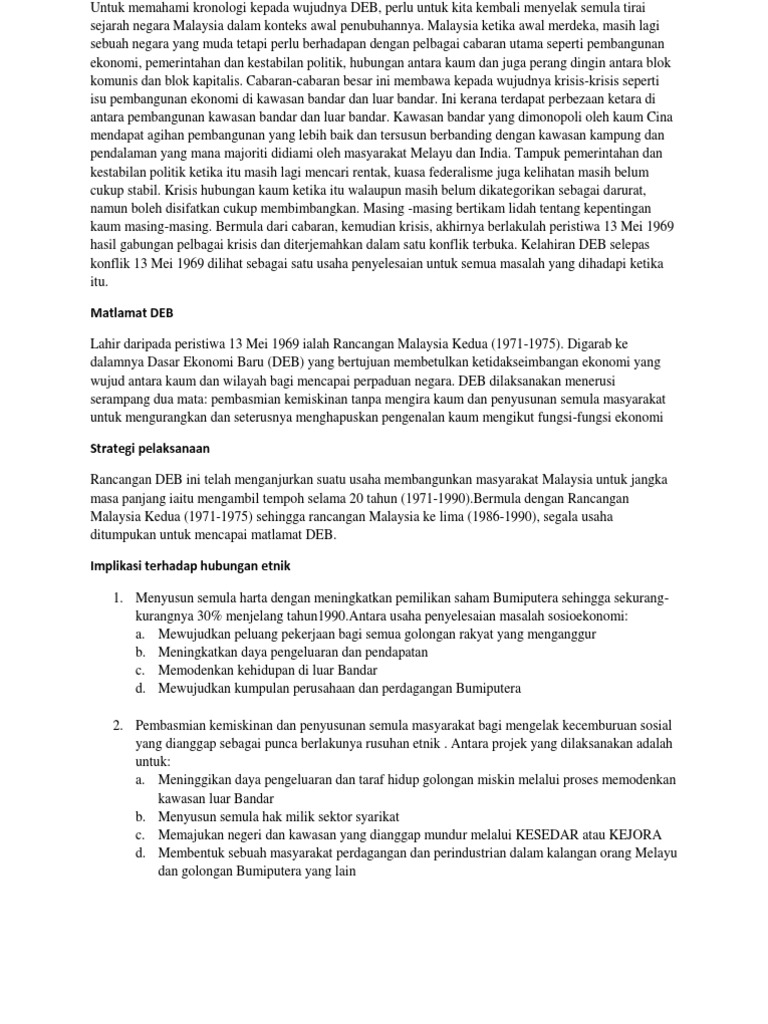 Pencapaian dasar ekonomi baru 13 mei 1969 fatin syafiqah aida anum fasya izzaty rosmahani syaidatul ezzaty sejarah dasar dasar pecah dan perintah. Penyusunan semula masyarakat agar 43 (5) rancangan pembangunan negara fasa kedua dasar ekonomi baru (deb) merupakan formula yang digunakan untuk memperbetulkan. Kesan dasar ekonomi baru terhadap hubungan etnik di malaysia. Hubungan etnik penting dalam memahami kesan pengindustrian disesebuah negara iaitu kesan pengindustrian dan hubungan etnik mempengaruhi dasar sosial dan perancangan sosial sesebuah negara. Kesan globalisasi perbezaan dari segi pendekatan harmoni rukun negara dasar ekonomi baru dasar pembangunan nasional.